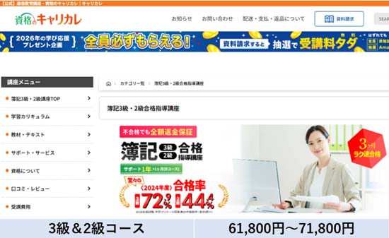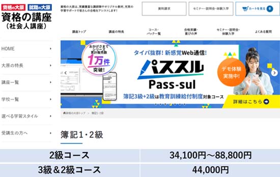 ただし、簿記1級は別として、簿記2級・3級ほどの超人気資格となれば、会計資格の予備校でなくとも、わかりやすい講座も多く、十分に合格できます。