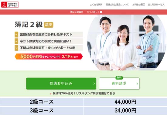 ユーキャン簿記2級 公式サイトへ※簿記3級はこちら |