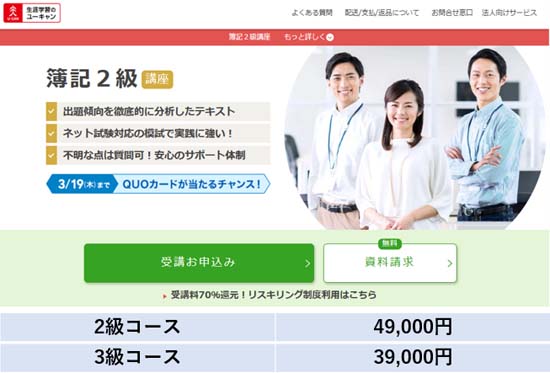 ⇒ ユーキャン簿記2級通信講座 公式サイト