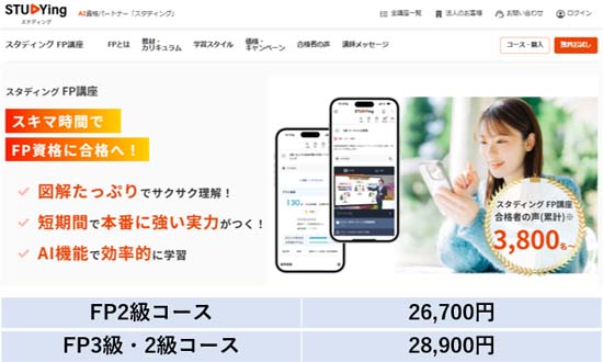 FP2級・3級通信講座のおすすめNo.1は、スタディングです!