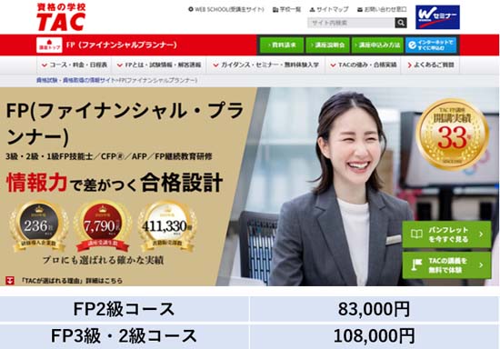 大手予備校(TAC・大原・LEC)のFP講座の中でも、TACが一番高い実績をあげていますので、FPの通学講座を選ぶなら、TACが一番のおすすめです。