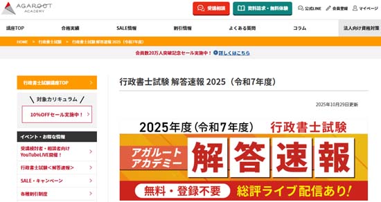 アガルートは、例年、最速で解答速報の公開を開始し、総評動画などのライブ配信も充実しています。