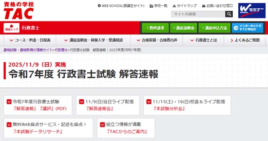 | 公式サイト | TAC 解答速報 |