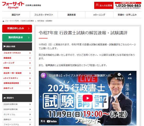 2025(令和7)年度 行政書士試験 本試験解答速報会