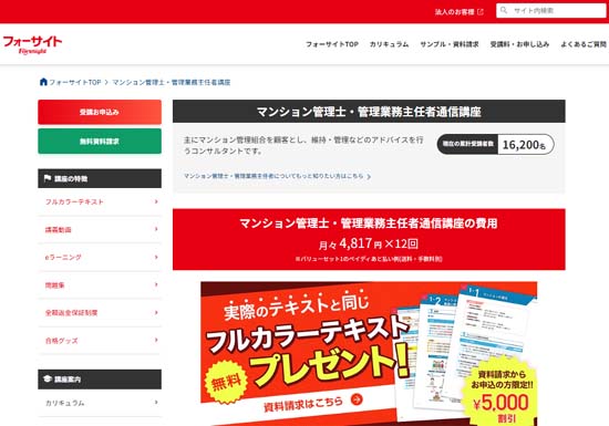 - 洗練されたフルカラーテキストとコンパクトな講義のフォーサイト! 73%の驚愕の合格率!⇒おすすめ通信講座2位へ