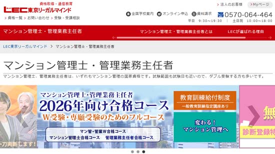 次にご紹介するのは、TACと並ぶ大手予備校のLEC東京リーガルマインドです。