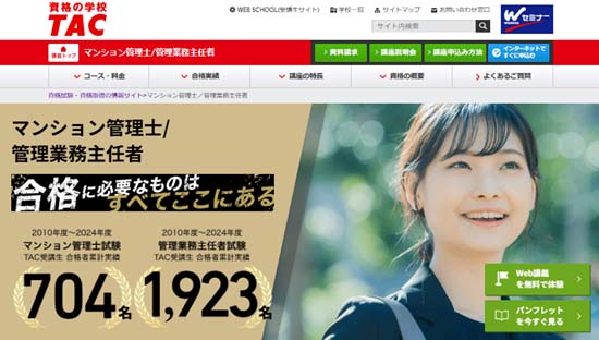 この管理業務主任者講座においては、TAC・LEC・日建学院の通学スクールの中では、TACが最も多くの合格者を輩出しています。