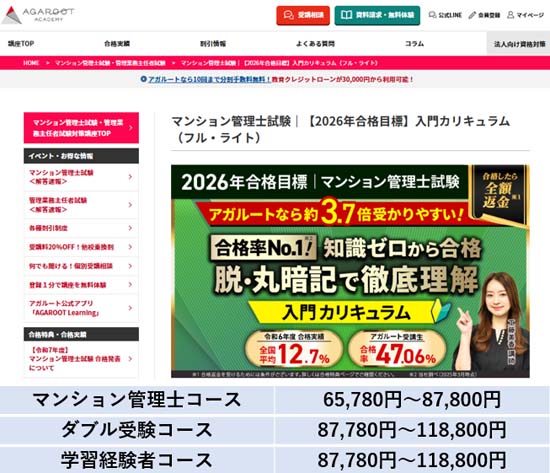 アガルートのマン管講座は、不動産資格の女王と呼ばれる人気の美人講師による充実の講義が最大の強みです。