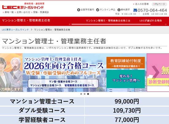 次に紹介するのは、TACと並ぶ大手予備校のLEC東京リーガルマインドです。
