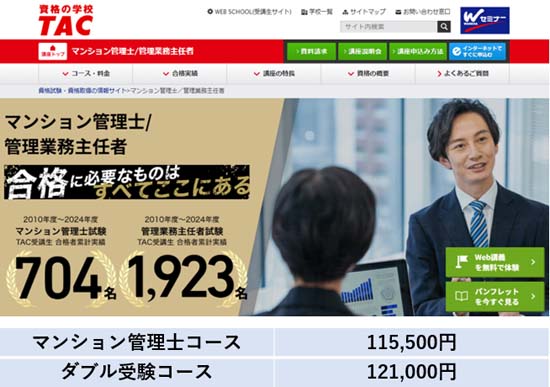 マンション管理士講座を扱う大手予備校のなかでは、TACが最も多くの合格者を輩出していますので、通学講座なら、TACが一番のおすすめです。