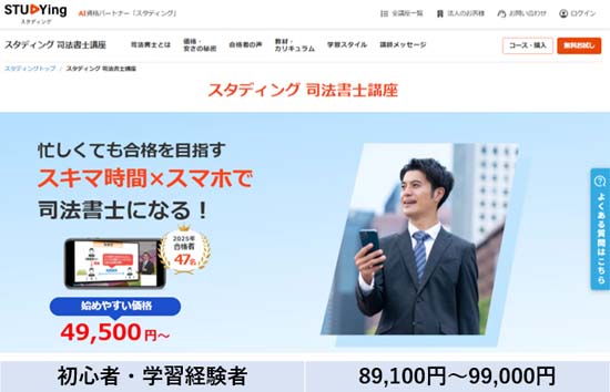 スタディングは、先駆的に2008年から、スマホで学べるオンライン資格講座を開講して以来、急速に実績を伸ばし続けている講座です。(司法書士講座は2014年に開講)