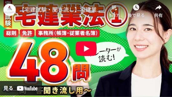 次に紹介するのは、難関資格のオンライン予備校アガルートが、YouTubeで提供している「宅建試験 一問一答 聞き流し」です。