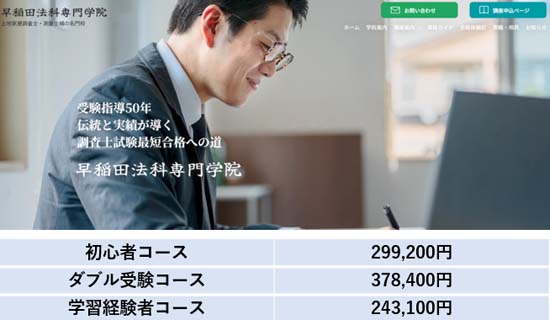 土地家屋調査士試験に最も力を入れている予備校で、長年の受験指導で培われたカリキュラム・講義・教材などは信頼に値します。